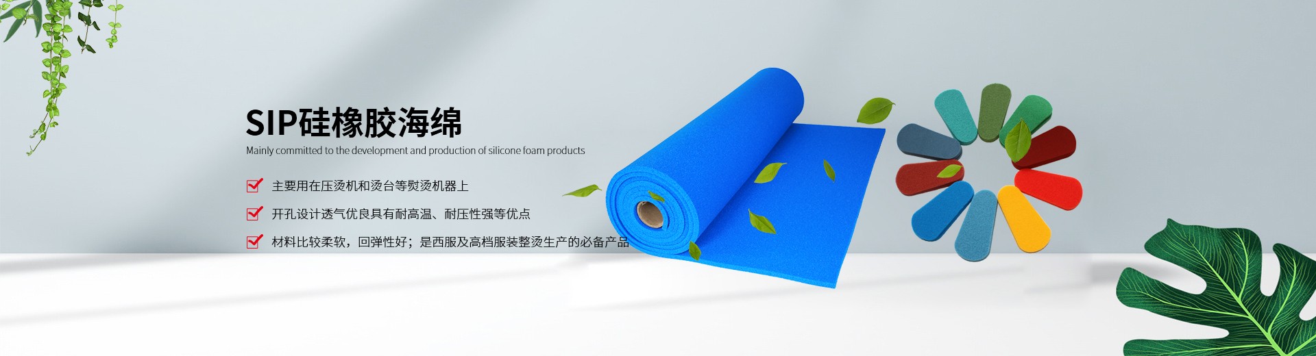 ????我公司生產(chǎn)的硅膠海綿具有耐高溫、耐壓、透氣性能好、抗撕拉、使用壽命長(zhǎng)、環(huán)保等特點(diǎn),主要適用于服裝干洗、水洗熨燙設(shè)備,如壓燙機(jī)和燙臺(tái)等。另外我們也提供各種燙氈、罩布等整燙專用墊料,客戶可根據(jù)不同熨燙工藝選擇不同的搭配組合,滿足高品質(zhì)的熨燙要求。